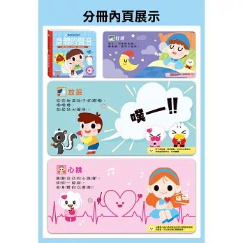 家長可在旁與孩子一起閱讀、一起聽聽看書中的音效設計與內文朗讀,也可以在身體發出這些自然聲音的時候和孩子一起複習,加深記憶!