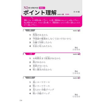 2.日中對照解題戰略:解題說明以日語進行,培養真實語感與聽力反應。並附中文對照翻譯,讓你邊學邊懂、快速掌握思考邏輯。真正做到「用日語解題、用中文吸收」,考場臨場力大幅提升!