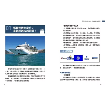 從北到南、從東到西,作者自身實際體驗出發,精選未來郵輪介紹,