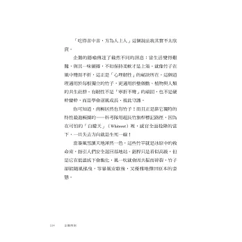 帶動他轉念的,是一群企鵝。當時他對企鵝充滿誤解:肚子肥、不會飛,走路蹣跚,還沒長膝蓋。沒想到一轉眼企鵝躍入水中,快如飛梭地游動,甚至還似乎向他投來了一抹「你可別小看我」的白眼……他猛然領悟:企鵝只要離開「不適合的環境」,便能怡然自得、餵飽自己。我們每個人也是一樣,只要在恰當的環境中,我們的潛質自然會有機會展現。