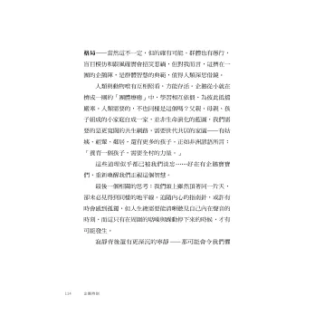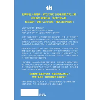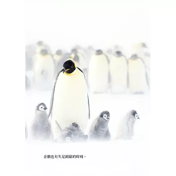 之後在演講、YouTube頻道或電視節目的採訪中,他經常說起企鵝給他的這個啟發,對無數人的人生和職涯,帶來極大的幫助,紛紛敲碗,期待他能寫出這個故事。於是他為讀者規畫了七堂不同角度的企鵝觀察課,並且邀請一流的企鵝攝影專家合作,期待用激勵的言語、美麗的畫面提醒大家: