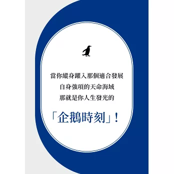 當你開始懷疑「我是不是不夠好?」、「我到底該怎麼辦?」時,請想起企鵝——牠雖然不能飛,在水中卻是最優雅的航者、最能幹的獵手。