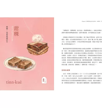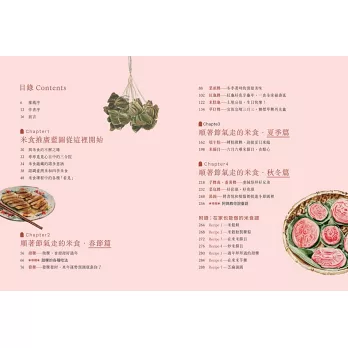 書中詳細收錄不同月份的臺灣米食紀實、在家也能做的小食譜,隨著作者書寫勾勒出的米食故事,能嚐到滿滿回憶、飲食脈絡、做法講究、親切的飲食語彙,從中了解臺灣米食的真滋味。