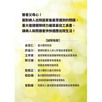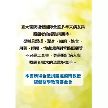 ★臺大醫院復健團隊彙整多年來病友與照顧者的經驗與期待,專為病人與照顧者量身打造的工具書!
