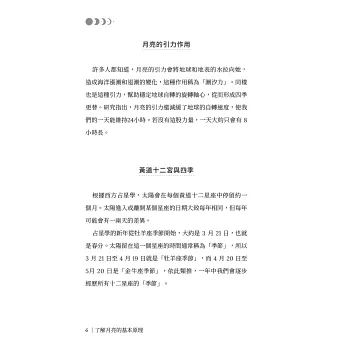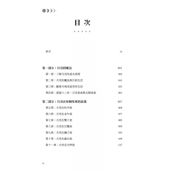 本書提供多種實用工具——從心願練習、肯定句與感恩日記,幫助你釐清方向、培養自愛與正向能量;並透過陰影書寫與鏡子練習,溫柔地面對情緒,整合自我。同時解析月亮落在十二星座蘊含的能量與課題,揭示新月願景與滿月釋放的最佳時機。
