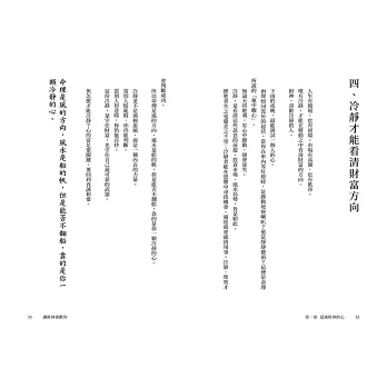 這樣的六個層次,讓讀者看了不會覺得飄渺,而會理解財富不是單單指錢,而是一個完整的系統。