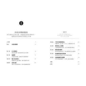 扭轉局勢的關鍵,是一支被派駐到矽谷廢棄海軍基地、預算被歸零的實驗團隊:國防創新實驗單位(Defense Innovation Unit,DIU)。這個被稱為X小組(Unit X)的祕密單位只有一個任務,就是將矽谷最尖端的商用科技,直接送進美軍最前線。本書兩位作者沙赫(Raj M. Shah)與基爾霍夫(Christopher Kirchhoff),正是一手打造X小組的靈魂人物。