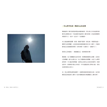 終發現人生很多的「想要」,也不一定是真的想要,裡面包括社會期待,還有無謂的想要,作者沉澱後轉向內心的探索後,開始登山,學習心理學,一次又一次的登山中,看見了大山大景,開拓了視野,也把心變得開闊,不再受限於疾病,尤其在走在喜馬拉雅山的美景中,抵達聖母峰基地營,作者了解到,也許在體能上就像烏龜走路一樣,慢慢走也能抵達心之所嚮。