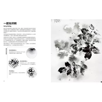 ★風靡英國的「Do More Art」系列。探索墨水作畫的多種使用方式:從噴灑、輕彈和噴濺,到撒鹽、刮擦紙面、刮鬍泡等新奇技法,學會趣味、精彩且不失藝術性的玩墨,視覺藝術家布莉琪.戴維斯以其現代美學和通俗易懂的內容,清楚展示各種技法,為讀者打造驚艷效果。