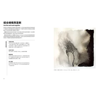 全書以單篇解題形式,探討了墨水在繪畫、插畫和字體創作中的運用。使用墨水作畫,很容易能想像它在紙上翩翩起舞的姿態——墨水本身似乎具有生命力。書中涵蓋廣泛技法,各程度讀者都可從中找到關鍵資訊。從基礎工具、材料、定義和材料選擇,到吸墨、水洗、滲色及其他單獨和組合使用的技術,繼而包括以鹽、漂白劑、防染劑、鋼筆和墨水在繪畫中的運用等等。了解墨水特性就能使其發揮特色及影響你的作品。以墨水作就像在建立夥伴關係:雙方有各自角色與責任。因此,你需要對它保有某種程度的掌控力:何時加水到紙上、墨水停留在紙上的時間、去除的墨水量多寡,何時能讓墨水自行流動……與作者一起用墨水來探索和實驗不同想法和技巧。