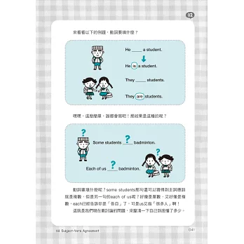 專為學習者量身訂做的15個章節,由淺入深、漸進學習,用口語化的文字講解文法,讀起來就像在看漫畫。無論是打好基礎、為考試準備,或想重拾英文自信,都能在短時間內看懂文法、開口正確說英文!