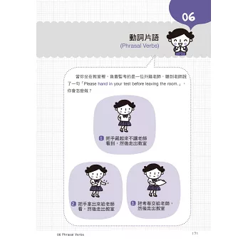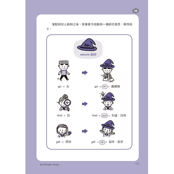 英文有相當多的用法是加上一個介系詞或副詞,整個片語或整句話的意思就會變得不同,可以延伸出許多意義。以往總是不明白誰該跟誰搭在一起,現在用文字搭配「進階圖解」說明這些有延伸意義的文法,看一眼就懂!