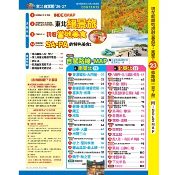 這本新改版的自駕旅遊指南,精選23條兜風路線,遊覽青森、秋田、岩手、宮城、山形、福島地區,帶領讀者深入廣袤的東北,用最自由的方式探索四季之美。