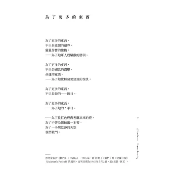 ◎最後一首是2023年本書在波蘭出版後她的秘書找到的詩,中文版首次收錄此詩。