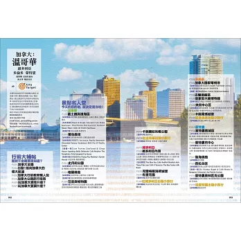 蒐羅加拿大各大城市所有必遊景點,每個景點都有詳細的介紹與有趣的典故,另外還有城內知名餐廳、人氣美食與特色商店大集合