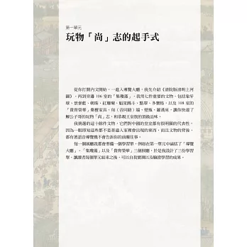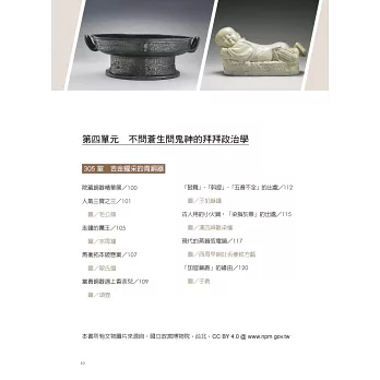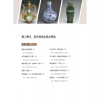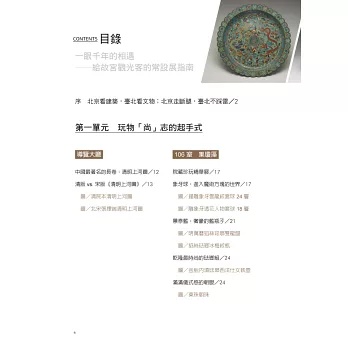 基於這種單純的構想,讓來客所見即有所得,筆者以常設展的文物做為切入點,本書主要分為四個單元: