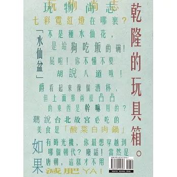 老祖宗留下來的故事太多,筆者盡可能羅列與文物相關的故事,讓來客可以一本書在手,信步悠遊翰海故宮,享受人生片刻寧靜時光,即是所願。