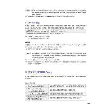 精選「高頻考題」與「必背句型」,並歸納出多款臨場可直接套用的「應試模板」。無論是寫作或口說,都能靈活運用結構句與延伸表達,在考場中迅速組織答案、穩定發揮。
