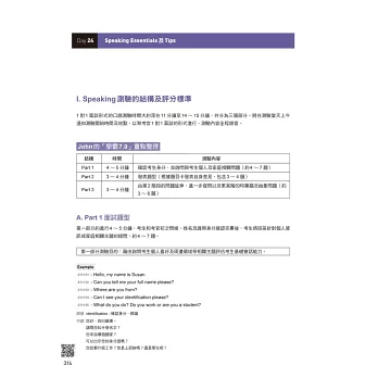 前12天訓練寫作架構與高分文法,13至18天掌握閱讀題型,19至23天專攻聽力四大Section,24至28天練習口說Part 1至 Part 3的回答策略。