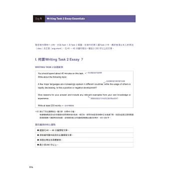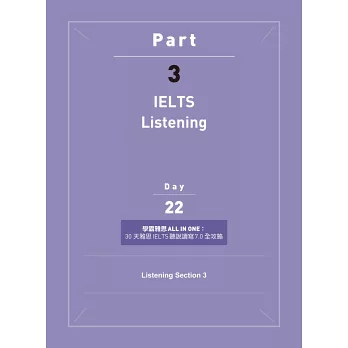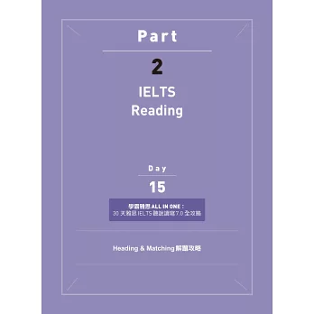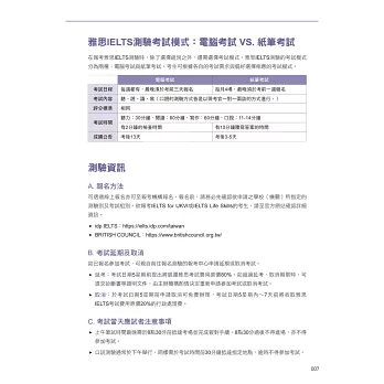除了書中內容之外,作者還特別設計了實用附錄,幫助學習者在最後關頭進行高效複習與自我檢查。附錄內容能協助學習者在短時間內統整思路、修正弱點、建立臨場節奏。只要依照附錄步驟進行模擬練習,就能在考前兩天穩定狀態、提升反應速度,以最完整的準備迎戰雅思。