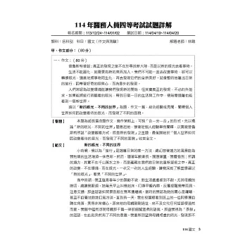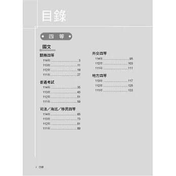 此書收錄了三、四等歷屆試題,適用於備考三四等公職考試之考生,涵蓋了多種類型公職考試如高普地特、司法、關務、外交,達成一魚多吃,再搭配上名師詳盡的解析與作文範文,幫助考生全面掌握公職考試國文科目的出題脈絡與方向。