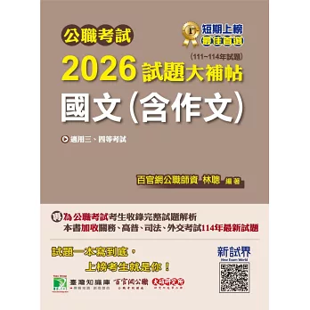 此書適用於【公職考試】高普、地特、司法、關務、外交,國文為公職考試的重要必考共同科目,此系列的試題書,提供想要報考這些公職考試的考生,能有一本考前衝刺的歷屆試題演練書,考生只需購買一本書,即可抓住各項考試的重點題型。