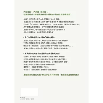 在變動不居的金融市場,分秒都有瞬間暴富的億萬富豪,也同時總有在大浪中被席捲而去的輸家;所有參與者都想衝上成功的灘頭堡,都想要在歷史大潮中乘勢而起(Riding the wave),各種投資暢銷書、財經媒體也不斷吹捧「首富」的成功故事。但是,真正的成功絕非僥倖,田渕先生用他數十年的經驗,非常低調、卻又誠懇的與一代又一代的股市小白分享他的經驗。