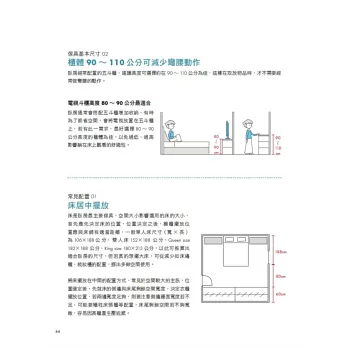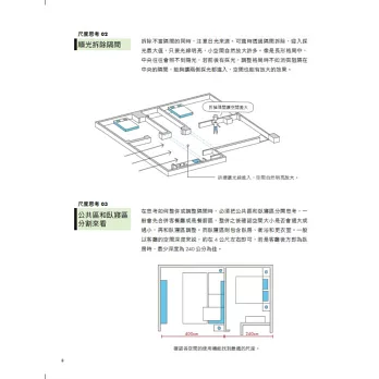 ◎整理各類格局規劃與傢具尺寸準則,提供可實際操作的改造指南,讓小坪數住宅也能擁有高效又舒適的居住品質。