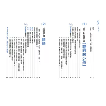 本書第1章介紹培養學習興趣的基本方法,說明持續學習的三大必備能力,並指引容易在家中實踐的互動方式,來培育出聰明的小孩。