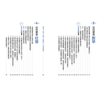 ◆進入到各科的「讓孩子變得會讀書的習慣」章節後,看到非常多具體情境與例子,說明家長可以怎麼發揮巧思來引導孩子學習。其中尤其是「社會」科目部分,對我相當有參考價值。
