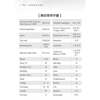 為使你在郵政考試中獲得高分,編者特別收集郵政相關的常用字彙、英文國名、地名譯寫原則、街道名稱英譯摘錄等,做一統整。也將所有曾考過的以及重要的單字、片語、文法、句型、會話、克漏字綜合測驗、閱讀測驗等重新編寫彙整,以方便你閱讀,強化應考實力。
