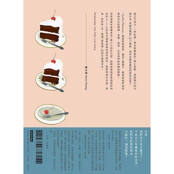 創作這本書的過程對我而言,是一種自我解脫。這十年來,曾經壓抑各種慾望的我,想透過晚餐派對、和飲食界的人對談來和自己的身心和解。透過和女性朋友以及業界女性的對話,我更加發現自我壓抑並不單純是我的問題,而是許多人的共同經驗。也許這不是本心靈成長或是教科書,但希望這本書可以提醒你該用比較溫和的方式來對待自己的身心。有的時候,我們對自己太嚴苛,不給自己享受的理由和機會。但是反過來說,我們真的需要任何理由,才能吃一塊蛋糕嗎?