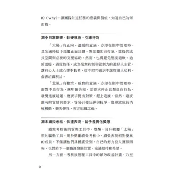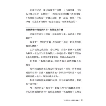 第二章,則進入績效管理的第一個階段:期初目標設定。其中,透過《愚公移山》體會目標設定的價值,即使難如移山,也能展現成果。並援引《曹沖秤象》象與石頭之間的「轉化」,學習如何將質化目標轉化為量化指標。