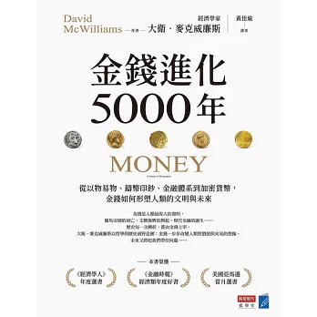 「《金錢進化5000年》從貨幣談到信用,再到債務,再到資產,然後講解資產泡沫、金融危機,從貨幣歷史講到金融歷史,可以看出作者的宏觀視野與論述的野心,非常有趣,也非常有料!這本書確實在理論與概念之外,提供了歷史視野,很值得在台灣推薦給讀者!」