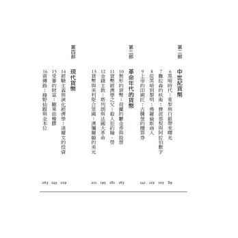 麥克威廉斯以哲學與歷史視野追溯,從泥板、古代硬幣一路上的演變,穿梭於各大文明帝國的興衰,例如佛羅倫斯文藝復興的繁榮、英國倫敦工業革命的巨變,直到現代的金融危機和數位貨幣比特幣出現……