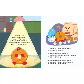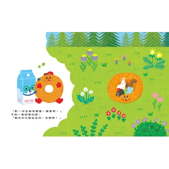 雞蛋、牛奶與麵粉一路陪伴甜甜圈小子,時而吵鬧、時而鼓勵,陪孩子一起感受友情帶來的勇氣與歡笑。