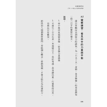 這次要出版的新書增加了一個最特別的部分,我個人認為,是AI覺察練習:看見命中的力量與平衡。當我在過程中。學到從不同角度凝視問題,漸漸的會從習慣中鬆動,讓我感受到柳絮老師所說過的,學習八字後。感受到那股生命的力量。