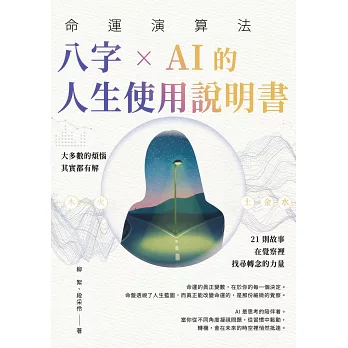 並透過 21 則真實故事,結合八字命盤的生命脈絡解析、AI 提示詞的覺察引導,以及每一篇章的「人生指引信」,