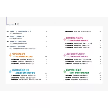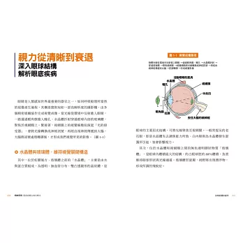 本書分為五大部分,首先從眼球結構的解析出發,帶領讀者理解視力如何從清晰逐漸走向模糊;其後深入探討視網膜病變的臨床樣貌,揭示視網膜剝離的真相與治療策略;再進一步剖析黃斑部病變這個常被忽略卻影響深遠的退化過程;最後則介紹現代眼底診斷工具的演進與應用。