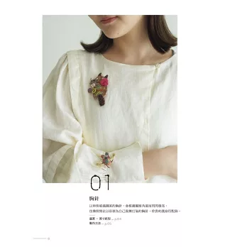 本書內附圖案,收錄基礎織補刺繡教學、基礎繡法、立體花朵製作、毛線&珠繡技法等,可完成時尚又極具魅力的胸針、外掛式領子、斜背小包、收納袋、夾式耳環、手環、項鍊、鑰匙圈等34件飾物,喜愛馬賽克織補圖案的您,與三村老師一同進入迷你又可愛的刺繡世界吧!