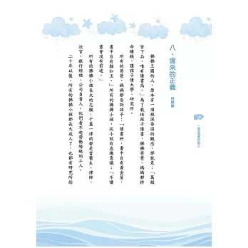 人學就是「與人有關的學問」,它就像一張神奇的地圖,帶我們去尋找許多事情的意義與價值;它可以幫助我們更認識自己,也讓我們試著去理解他人的想法。本書就像一扇小小的窗戶,打開來,我們會看到好多不一樣故事,感受到很多不一樣心情;我們會跟著故事裡的人物,一起笑一起哭。例如: