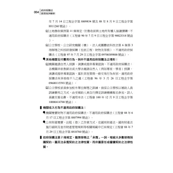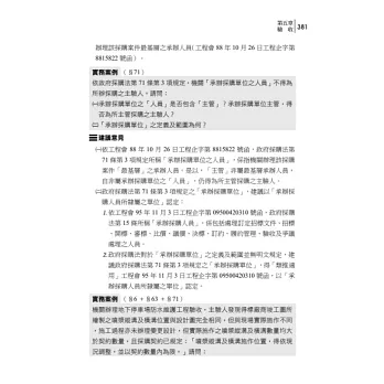 建議讀者如遇有採購問題,得先判斷涉及政府採購法何等條文,如投標廠商除自己投標外,又另借用他人證件投標陪標,可能涉及政府採購法第31條、第87條、第101條等規定,再直接查詢本書相關條文實務案例即可,希望本書能成為讀者手邊工具書。