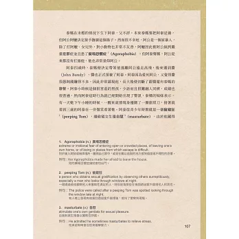 於解說案件的同時標示重點單字與片語,統整法律、醫學、心理學及日常必備詞彙,提供單字詞性、英文釋義、例句與中文翻譯,幫助讀者徹底了解並活用。搭配克漏字習題可進行快速演練,即時檢測對所有字彙的掌握度,一兼二顧,摸蜊仔兼洗褲!
