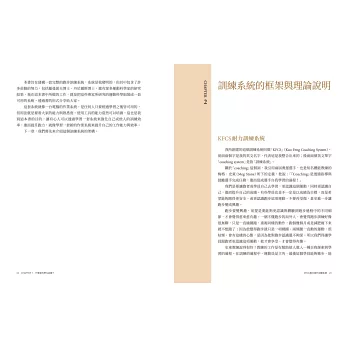 在經過多年研究教學與訓練後,他統合了自身經驗以及西方重要科學化跑步訓練知識,建構出「KFCS跑力提升訓練系統」,將跑步訓練的核心拆解為四大要素——心、體能、力量、技術,強調這四大面向由內而外、循序漸進的整合訓練,正是有效提升跑力的關鍵。