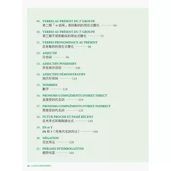 本書並非涵蓋所有的法語文法,而是以初學者該學到的基本文法概念為主軸,以期許初學者能以簡單的句子做生活對話。