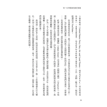 每章都有許多故事,章末也會提供後疫情時代的職場禮儀、書籍與Podcast推薦,以及我最可靠、最實用的建議。