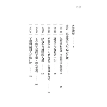 書中章節依照職涯成長階段設計,而這些階段發生的問題,正是我經常被問到的。當你在工作中向上發展、開始組建家庭,或成為團隊管理者時,你可以回到相關章節,回想自己如何踏上這些階梯、應對挑戰。