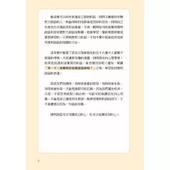 書中收集了10大類、59種不同類型的小故事,我們都希望自己的孩子成為會勇敢表達意見,同時也會關懷對方的人,因此,我們都必須學習聰明說話。
