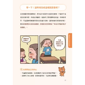 可利用本書跟孩子模擬情境,以角色扮演的方式來練習如何回話,通過建議孩子們要怎樣說話以及教導可以馬上拿來使用的話語。孩子們只要正確地學會這些表達,就可以跟朋友們建立更加健康的關係。之後如果遇到那些無法正確地表達自己情緒,持續累積後,隨便亂發脾氣或說出攻擊性言語的朋友時,就不會被對方牽著走,反而可以溫和但果斷地表達出自己想說的話。