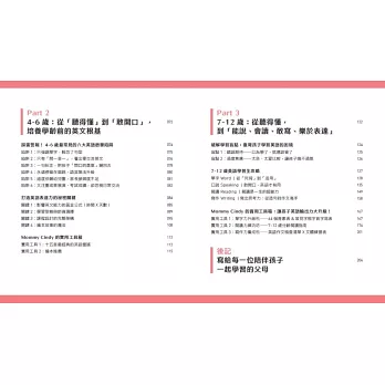 在這本書裡,我特別規劃了兩個非常重要的板塊:「原來如此,語言知識站」與「Mommy Cindy 的實用工具箱」。前者提供家長不可不知的正確觀念與科學依據;後者則提供家長能立刻和孩子互動的實用方法。兩者相輔相成,讓家長在理解原理的同時,也能馬上帶著孩子一起做、一起玩、一起開口說英語。